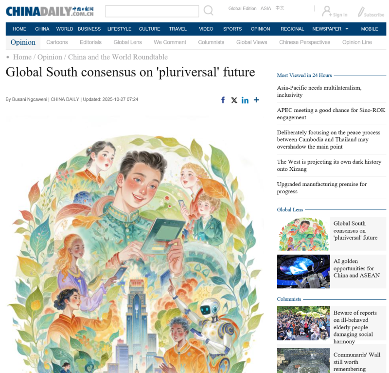 Busani Ngcaweni is director of the Centre for Public Policy and African Studies at the University of Johannesburg. This article was first published on China Daily on Oct. 27, 2025.