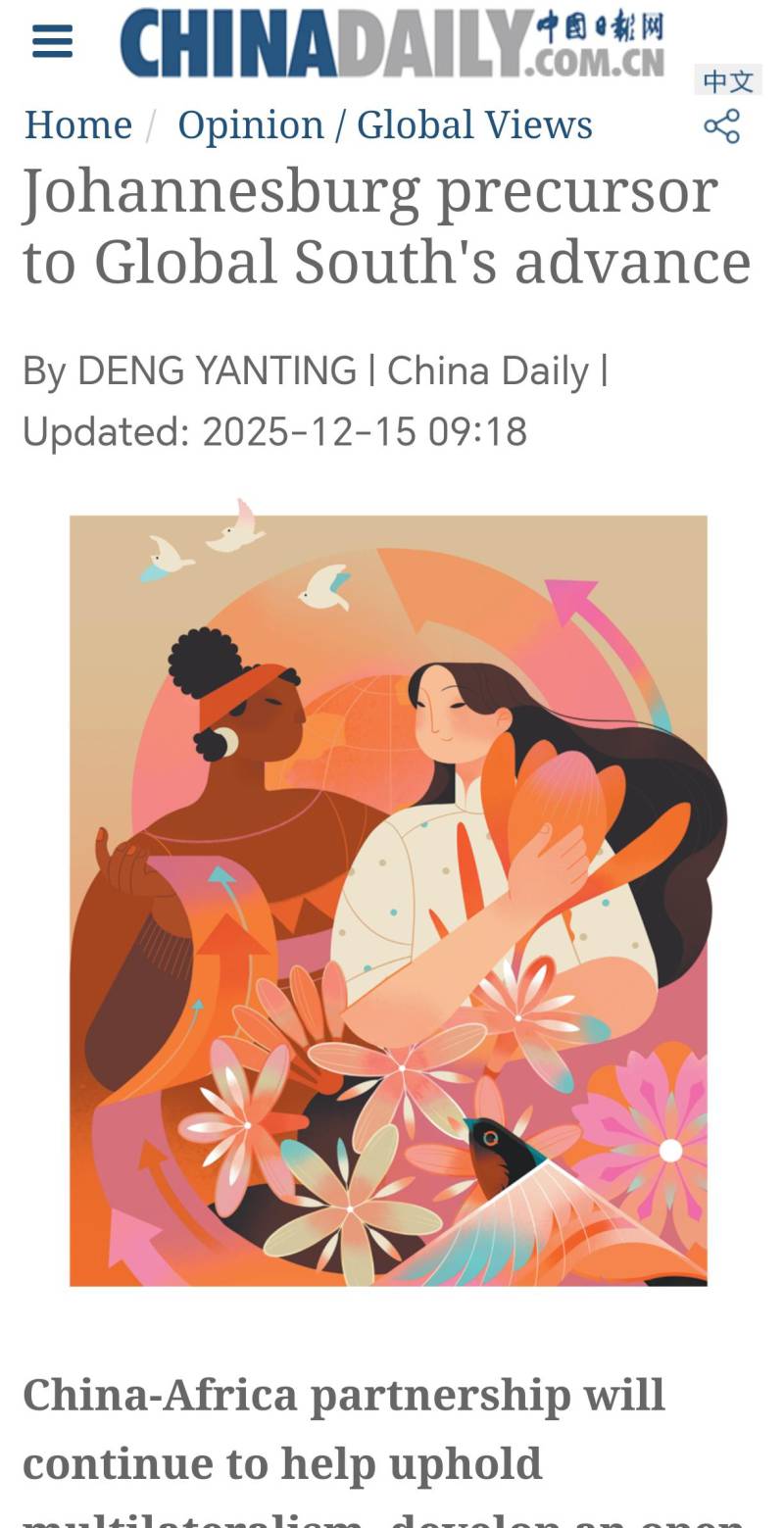 With the "African Moment" at the Johannesburg Summit showcasing the power of the Global South, the time-honored China-Africa partnership will continue to serve as a detailed annotation to global efforts for upholding multilateralism, developing an open world economy and promoting consensus on development cooperation, and empower the G20 to make more constructive contributions to the building of a community with a shared future for humanity.