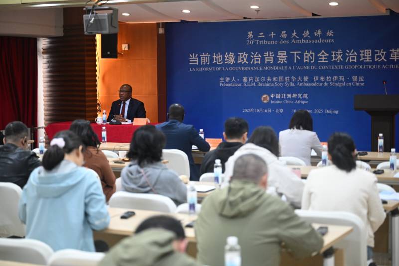 The China-Africa Institute (CAI) held the 20th Ambassador Lecture on October 16, 2025, featuring a keynote speech by H.E. Ibrahima Sory Sylla, Ambassador of Senegal to China. The lecture was presided over by Prof. Tian Feng, Vice President of the CAI, and attended by scholars of the CAI, faculty and students of the School of International Politics and Economics, University of Chinese Academy of Social Sciences (UCASS).